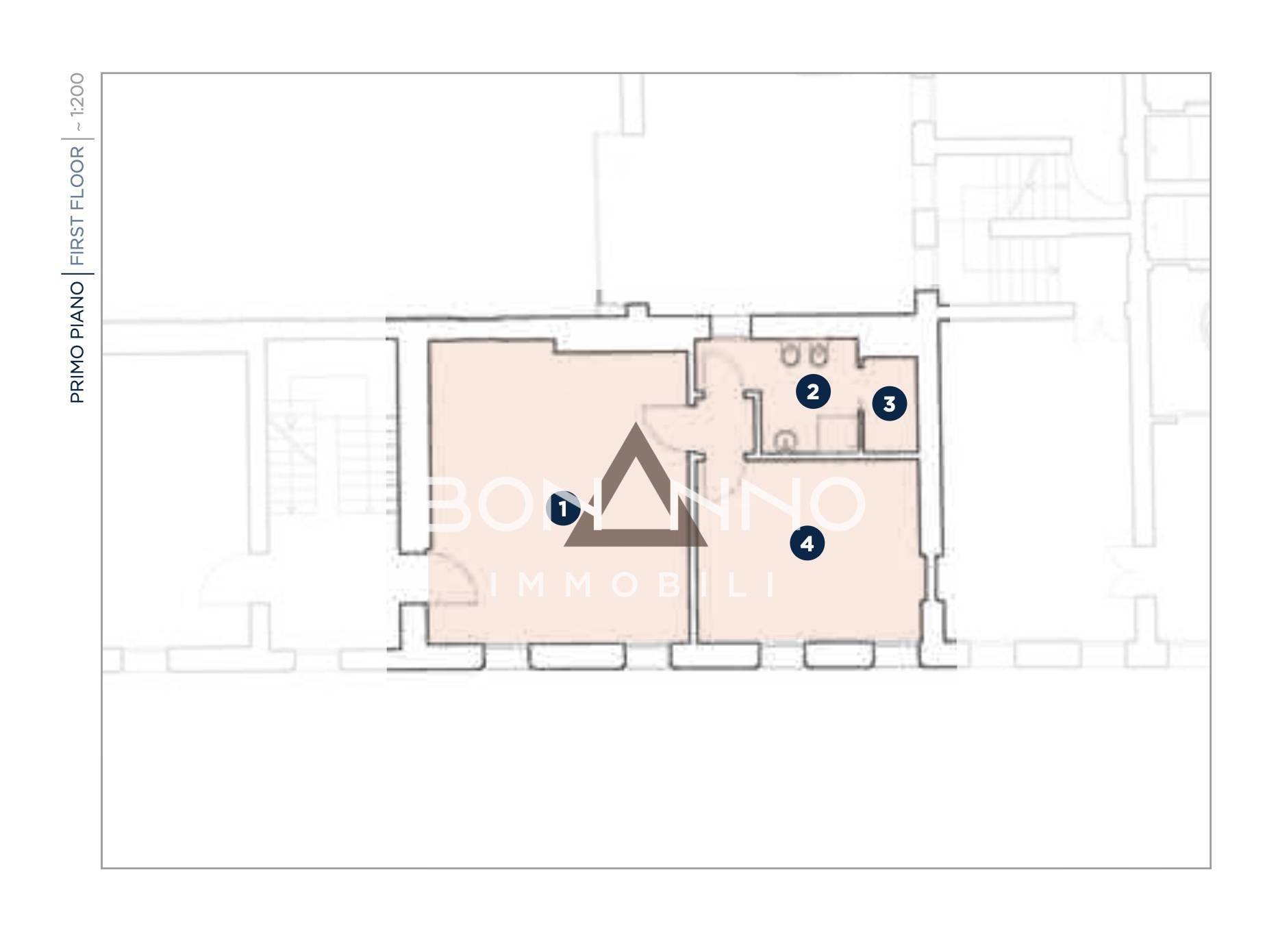 MINI APPARTAMENTO al primo piano senza ascensore, composto da ingresso direttamente in ampio soggiorno con cucina a vista, camera matrimoniale e bagno con lavanderia.
