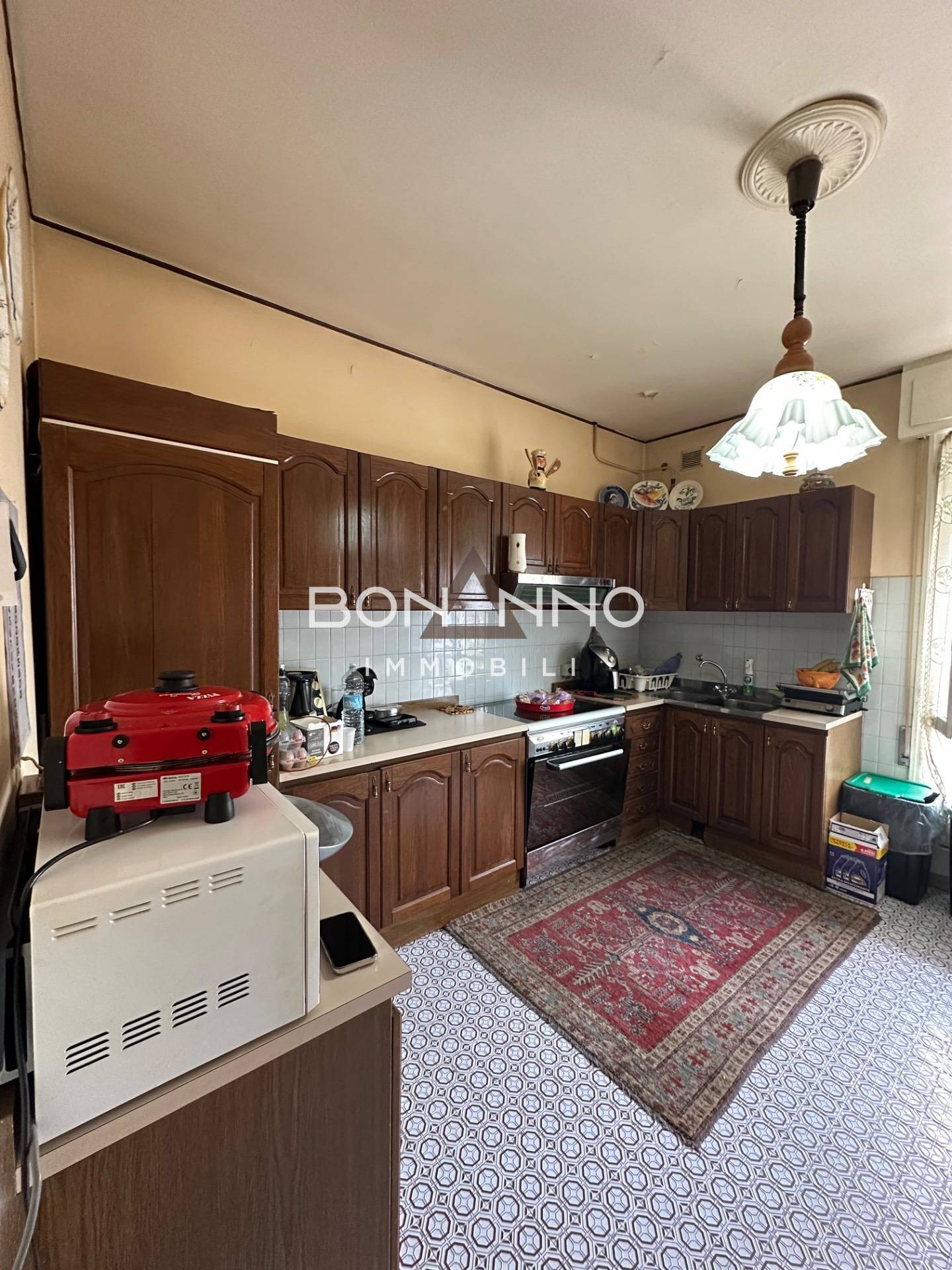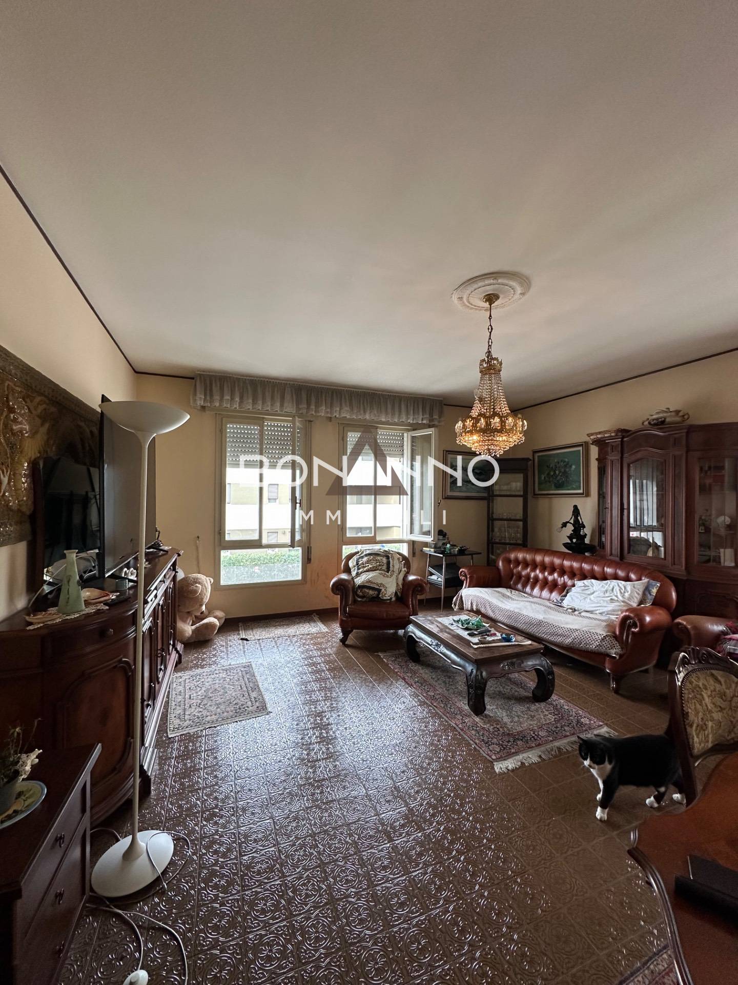 L’appartamento si estende su una superficie totale di circa 135 mq commerciali, suddivisi in sei locali: soggiorno, una cucina abitabile, tre camera da letto.