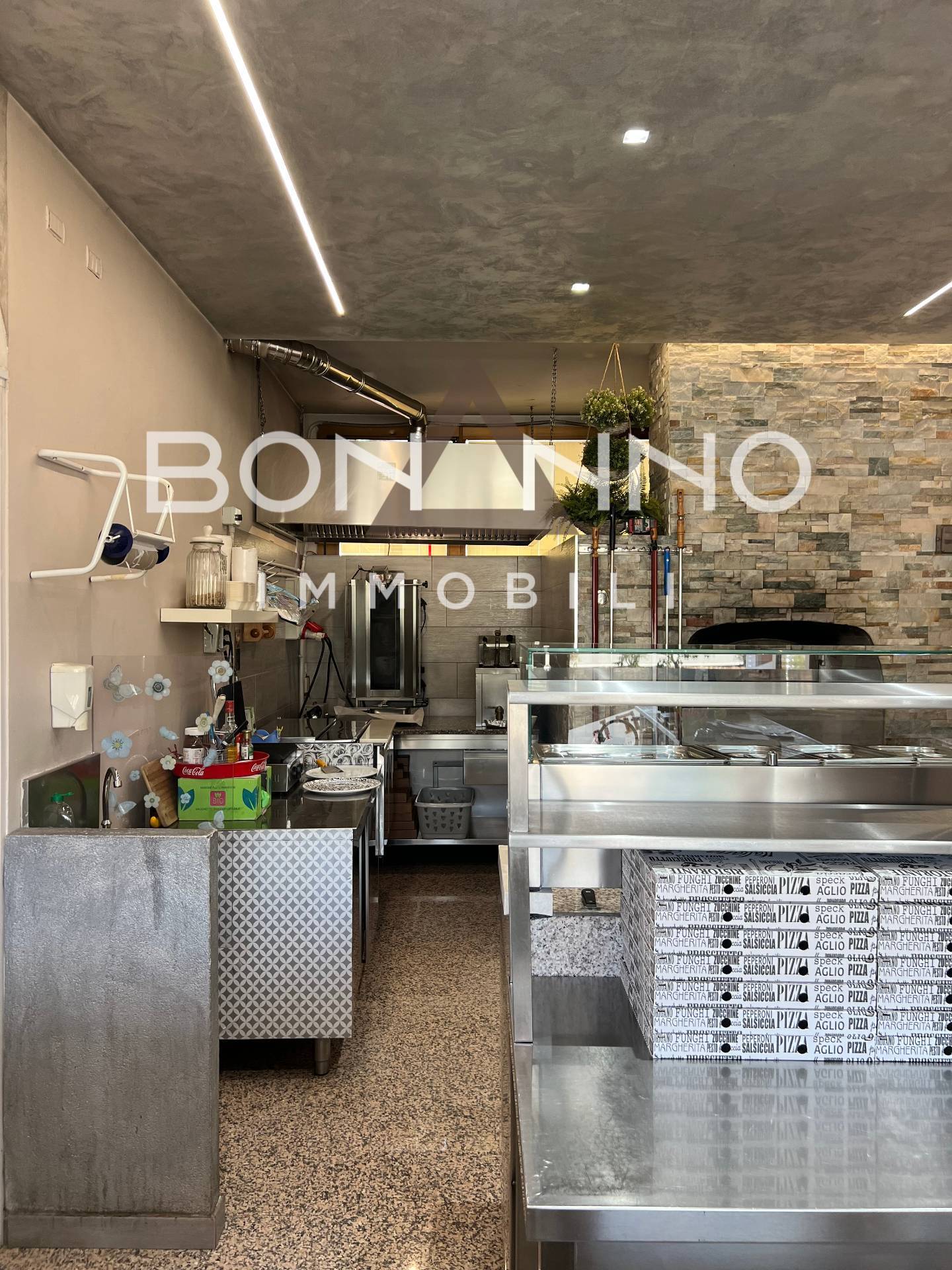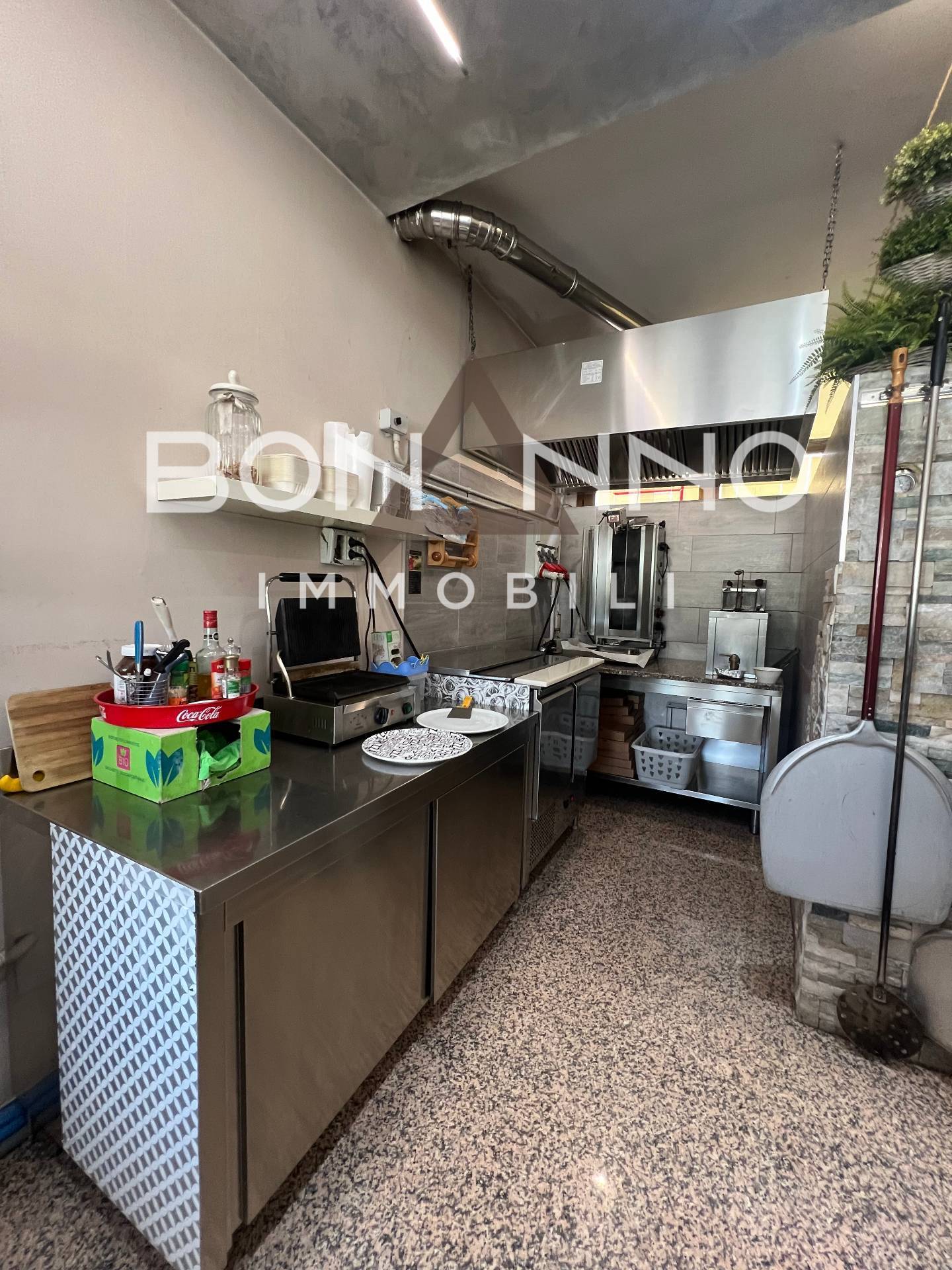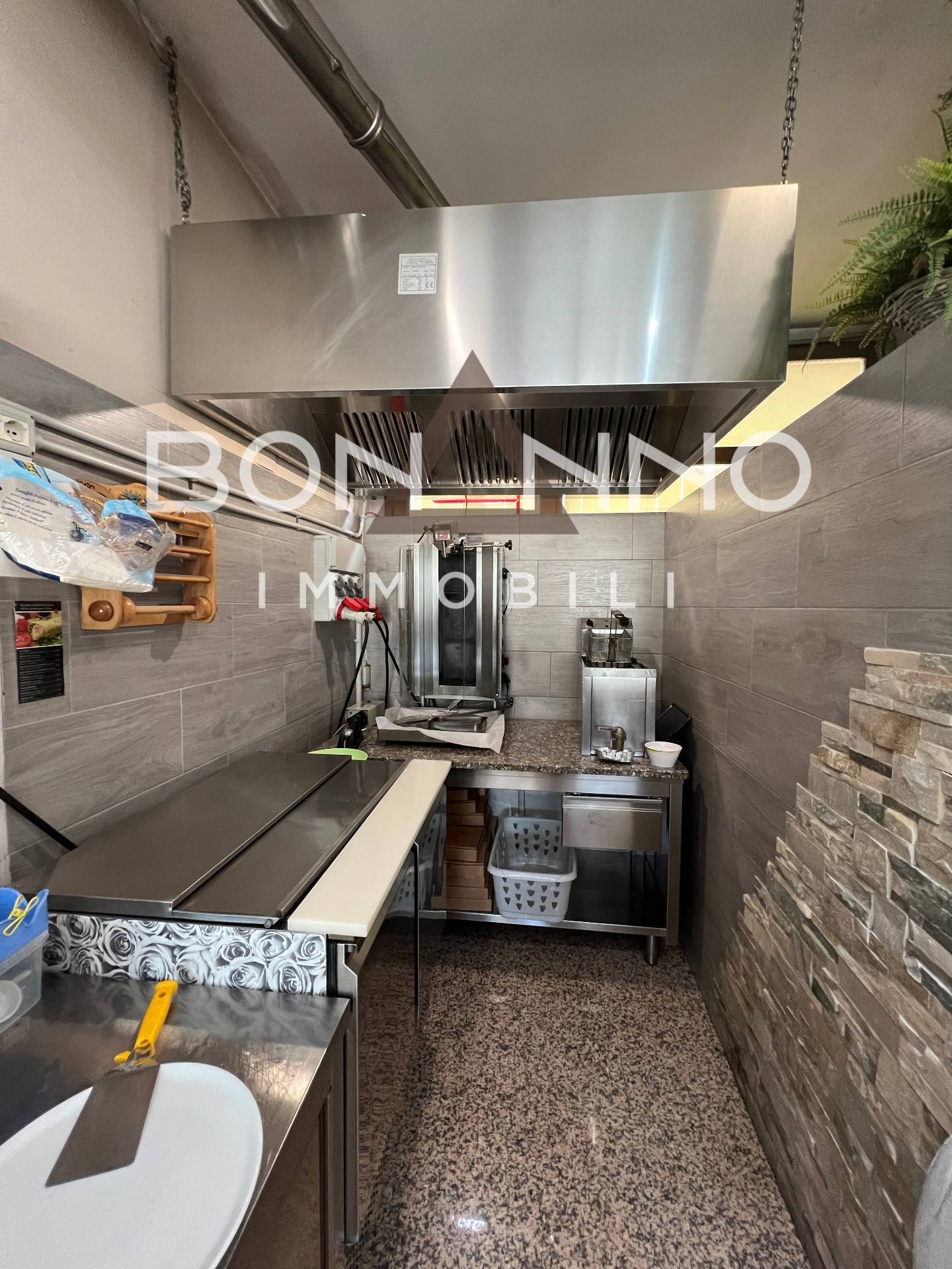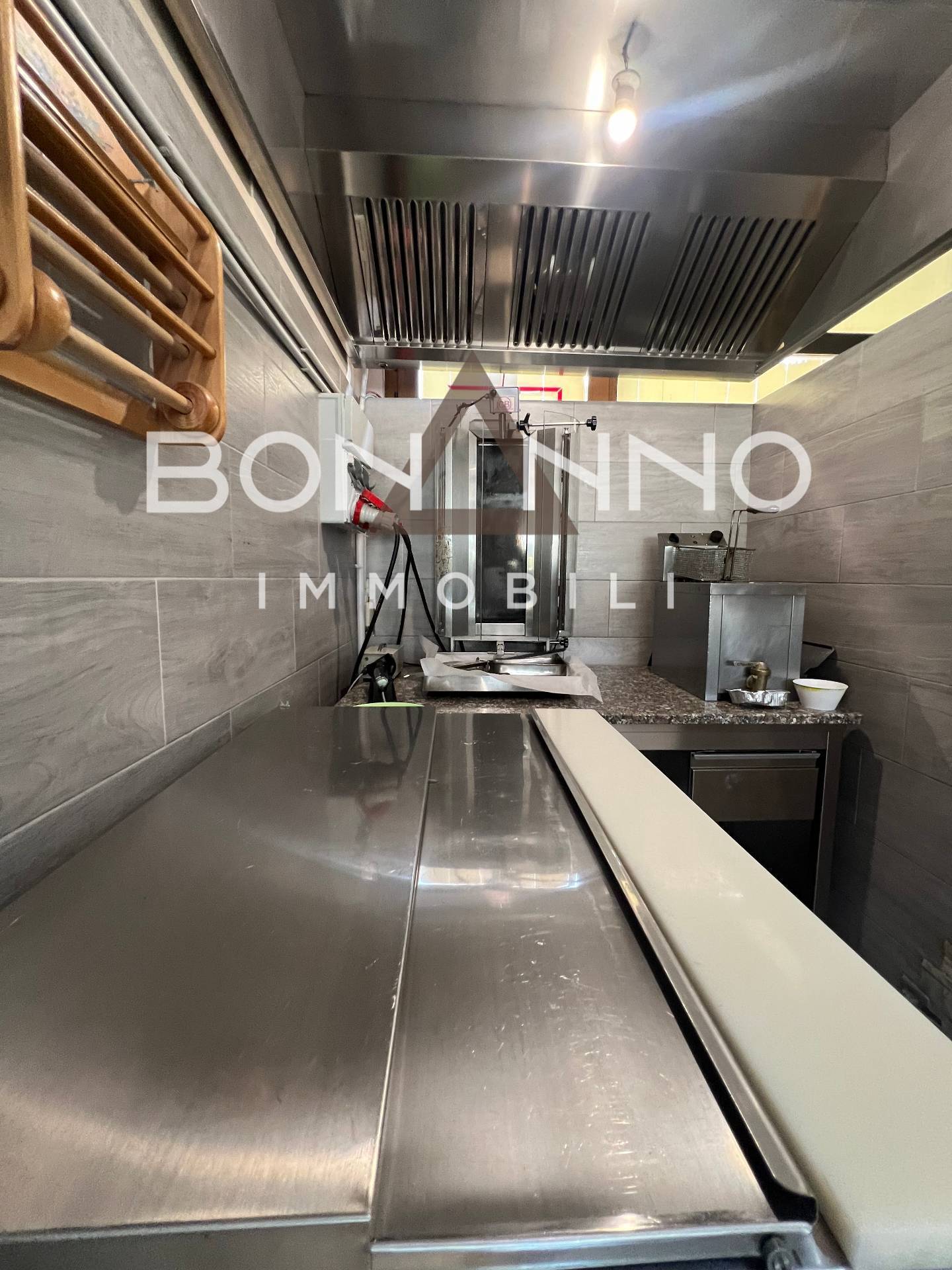 Il locale commerciale si sviluppa per 60 mq al piano terra e 90 mq nell’interrato dove è presente il locale spogliatoi per i dipendenti, magazzini, cucina per la preparazione, frigorifero, lavastoviglie…