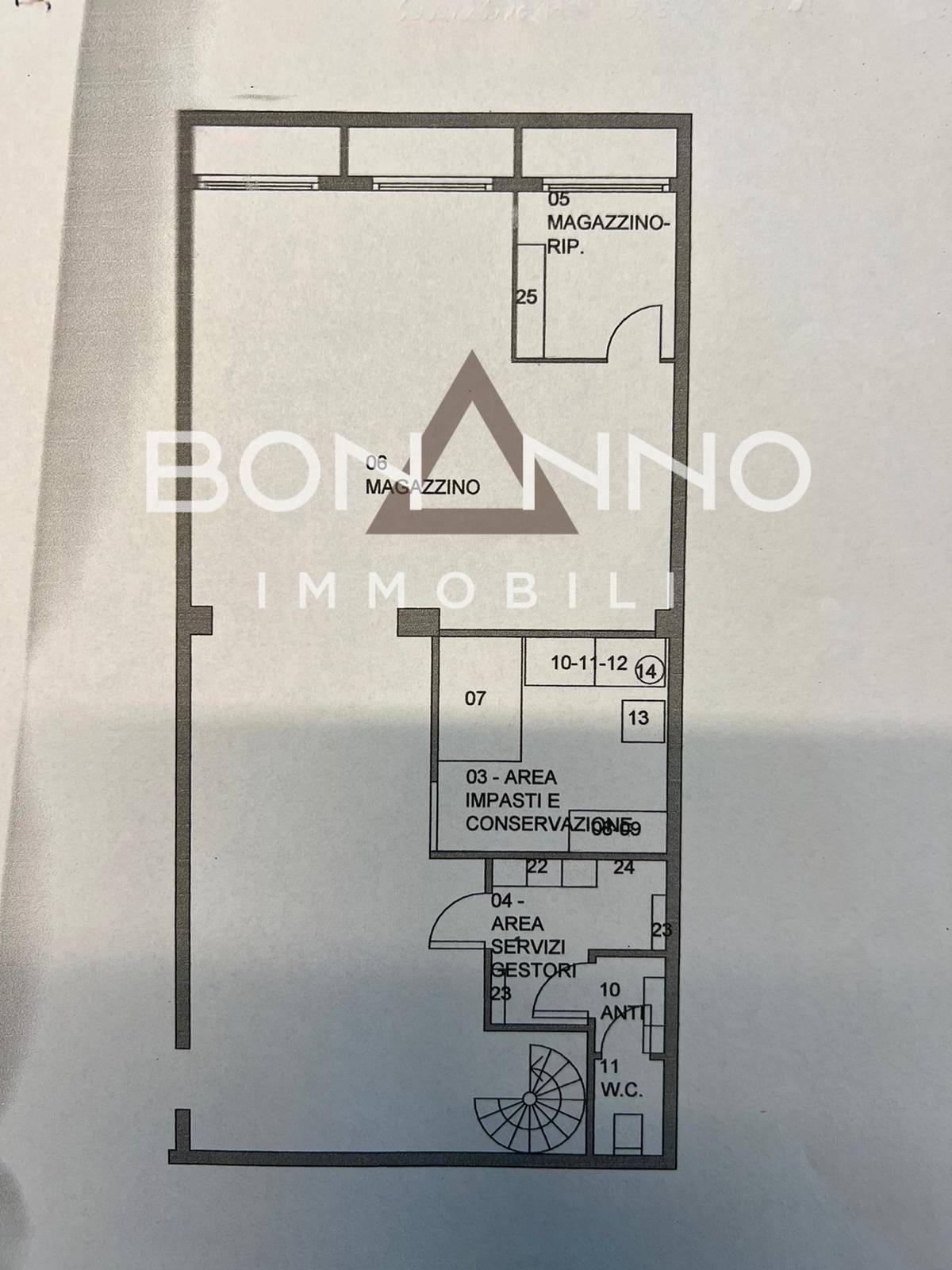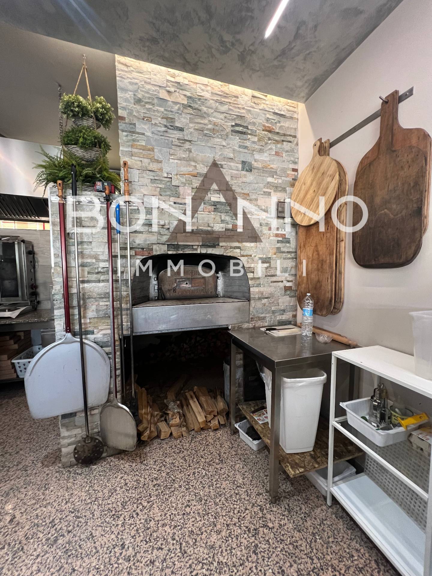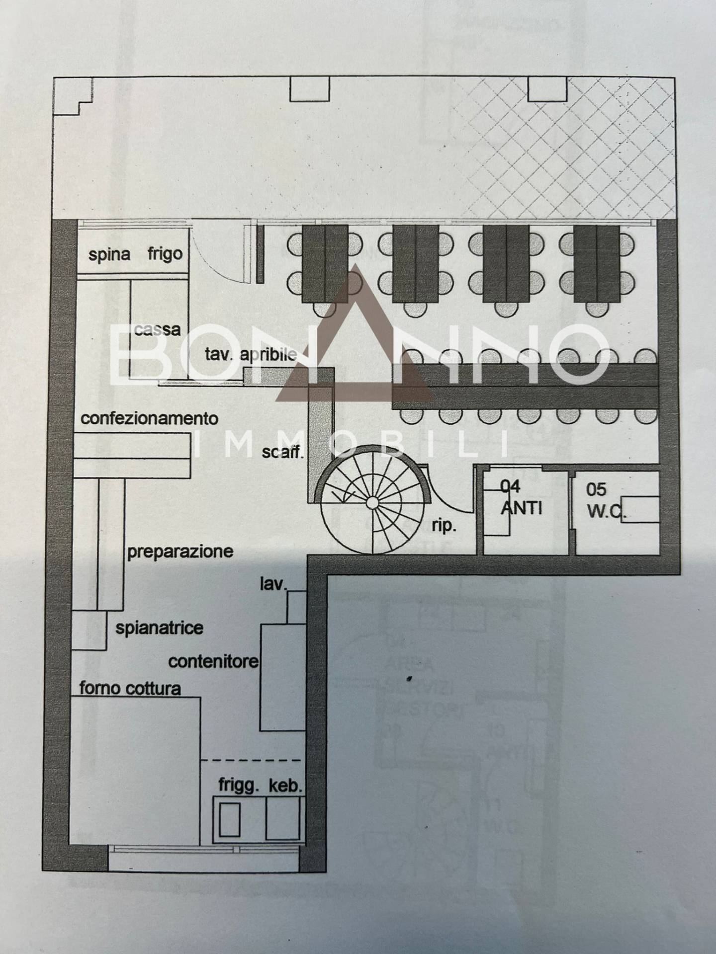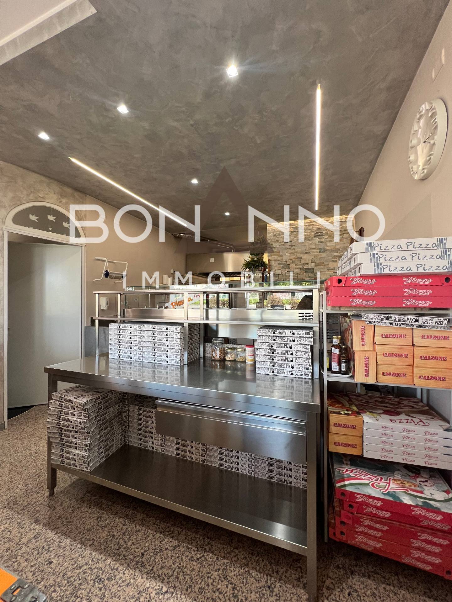 Il locale commerciale si sviluppa per 60 mq al piano terra e 90 mq nell’interrato dove è presente il locale spogliatoi per i dipendenti, magazzini, cucina per la preparazione, frigorifero, lavastoviglie…