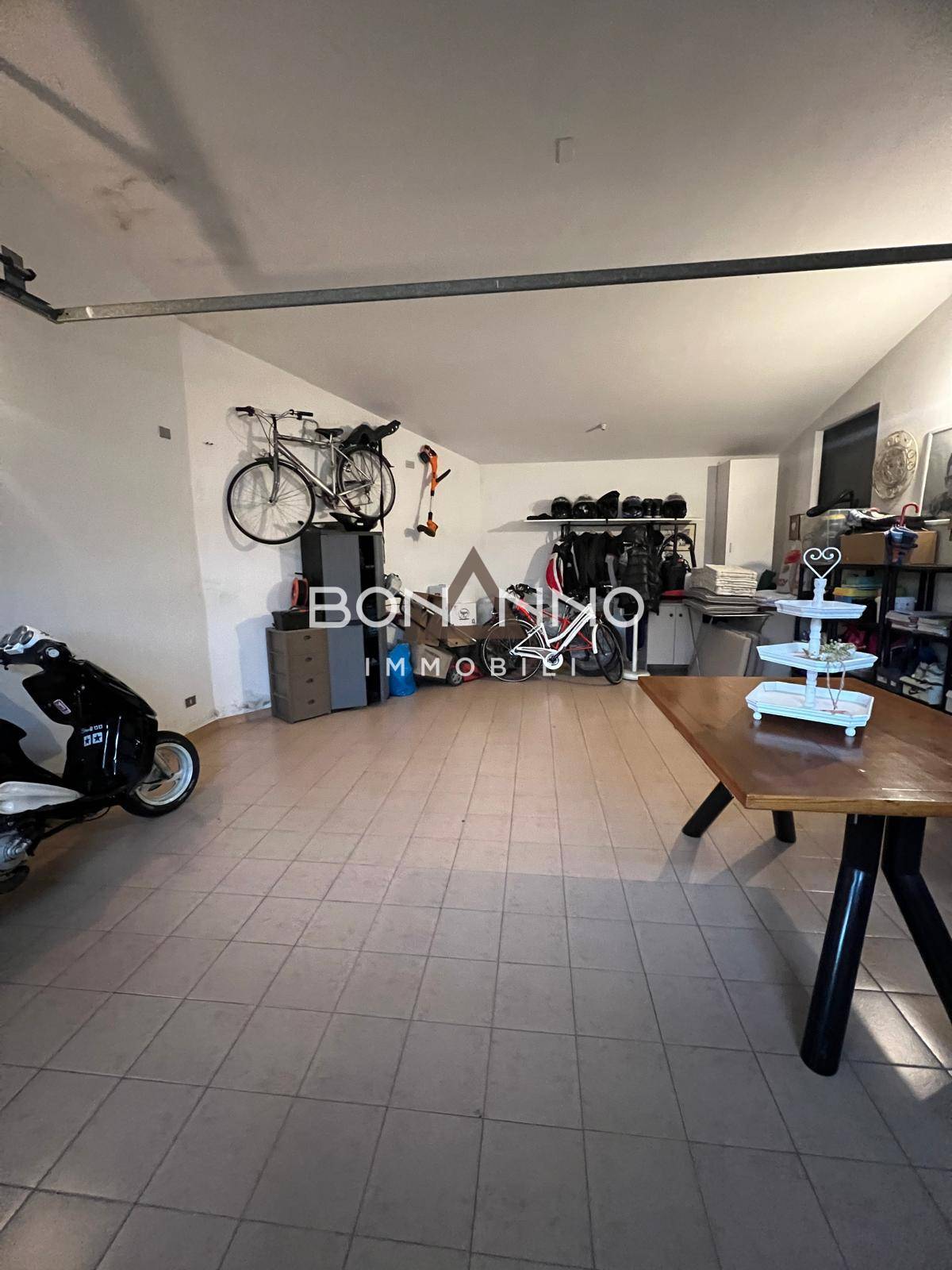 La casa ha due entrate una pedonale a sud che da un vialotto porta all’ingresso principale ed una ad ovest sul giardino privato di circa 950 mq dove abbiamo i posti esterni e l’ingresso dal garage doppio con basculante elettrico che porta direttamente alla casa.