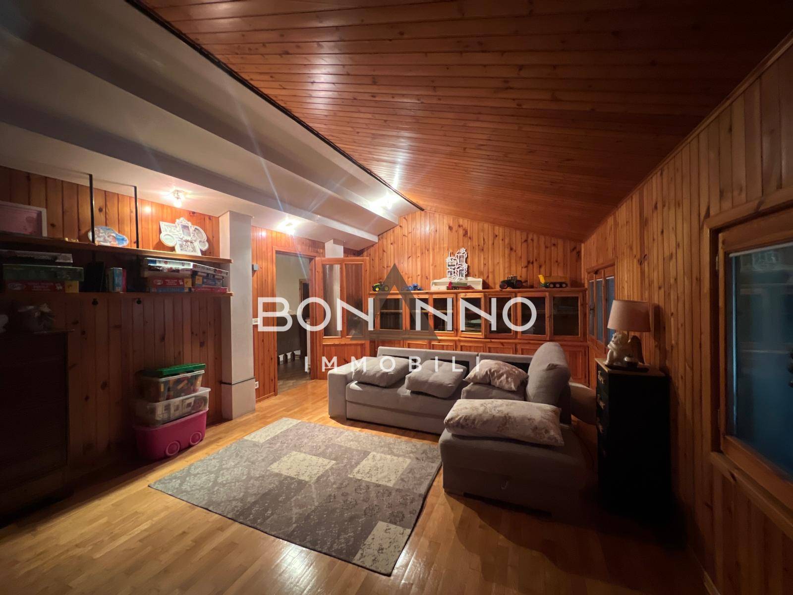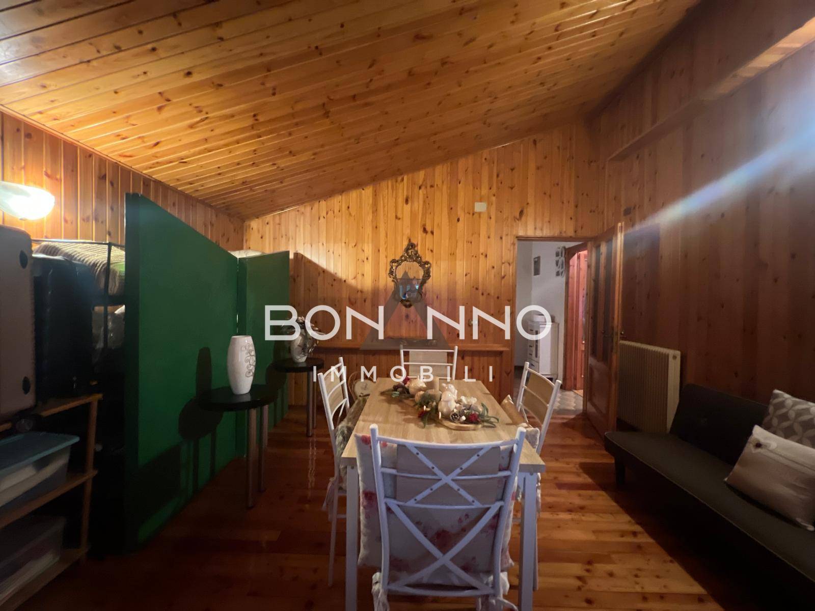 Salendo nella mansarda di altezza 2,8 metri abbiamo due ulteriori camere rivestite in legno tipo baita di montagna.
