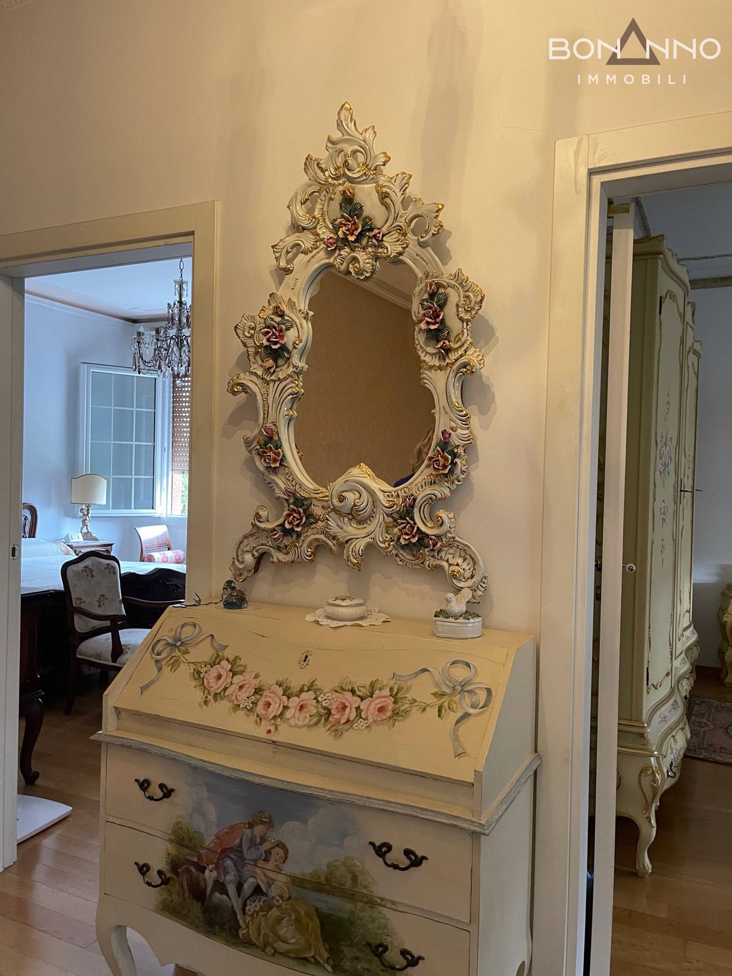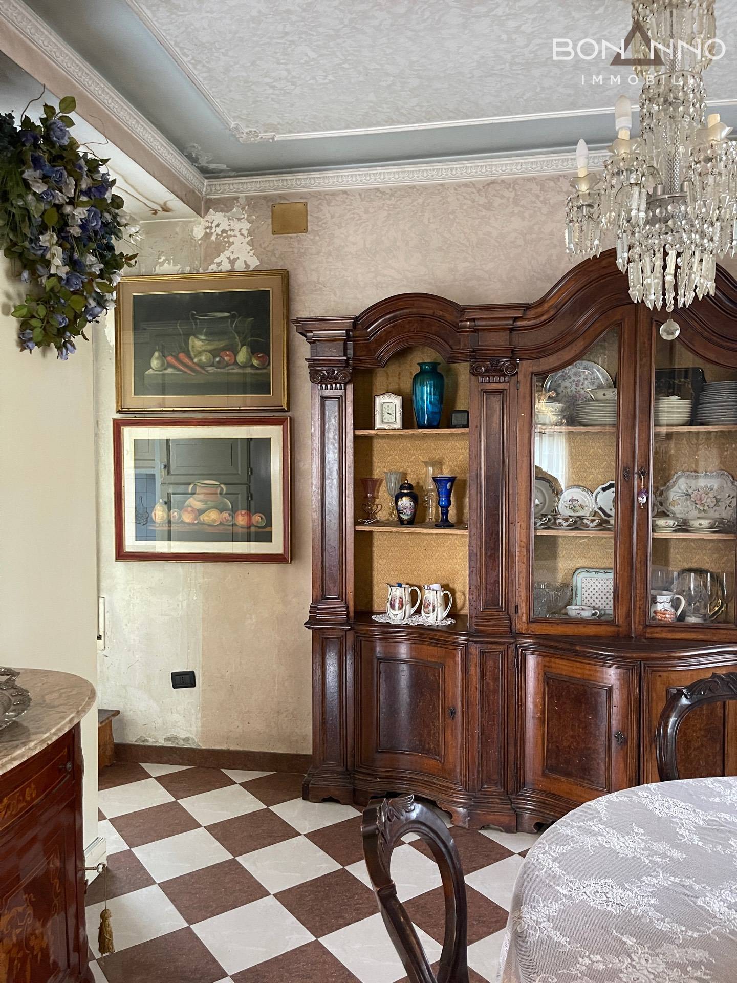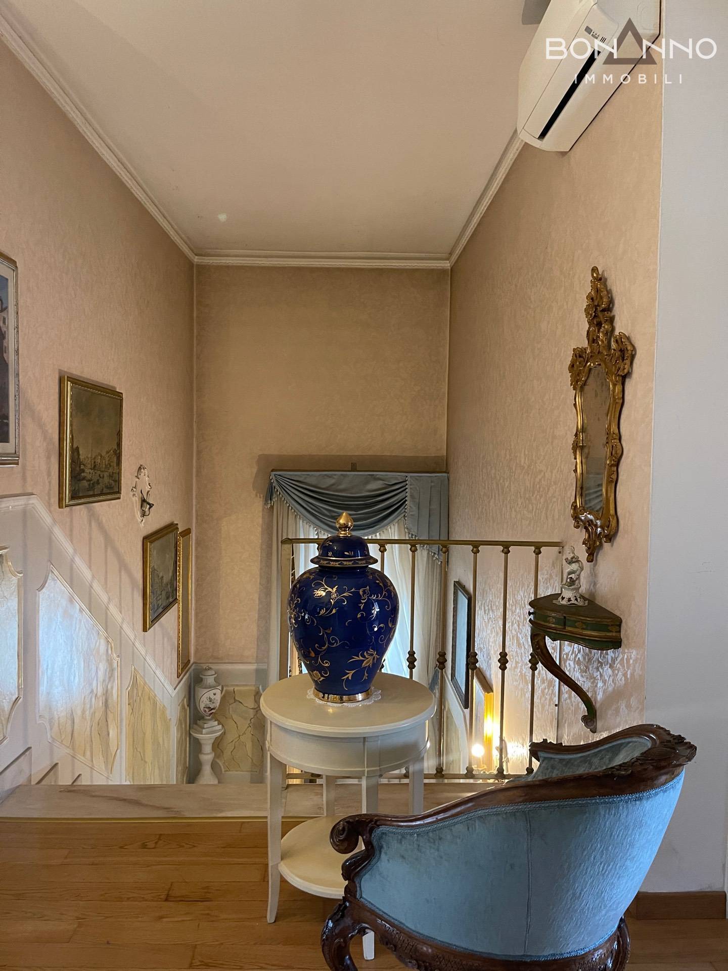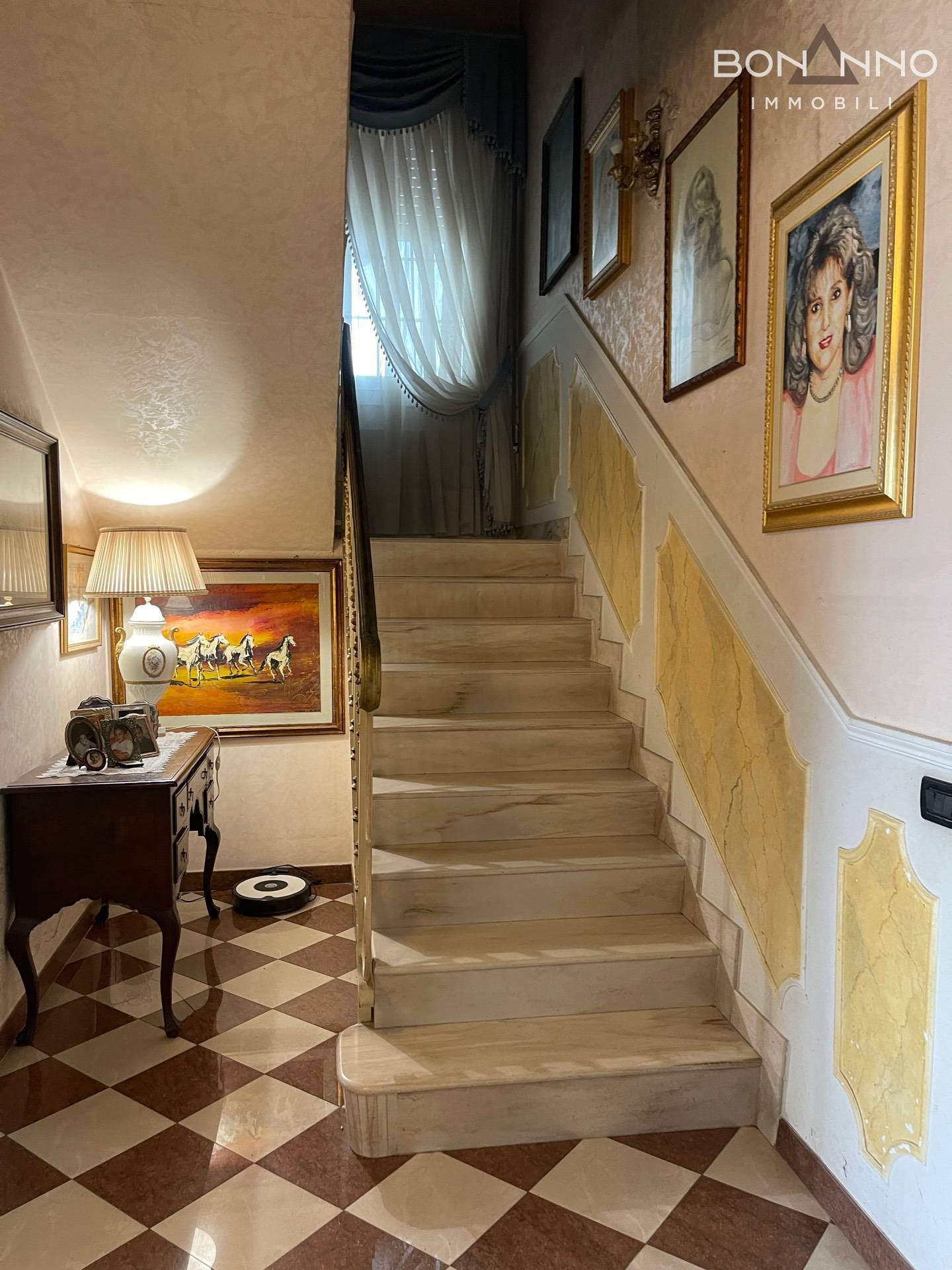 Il pavimento del piano terra è in marmo, mentre al piano primo troviamo il legno.