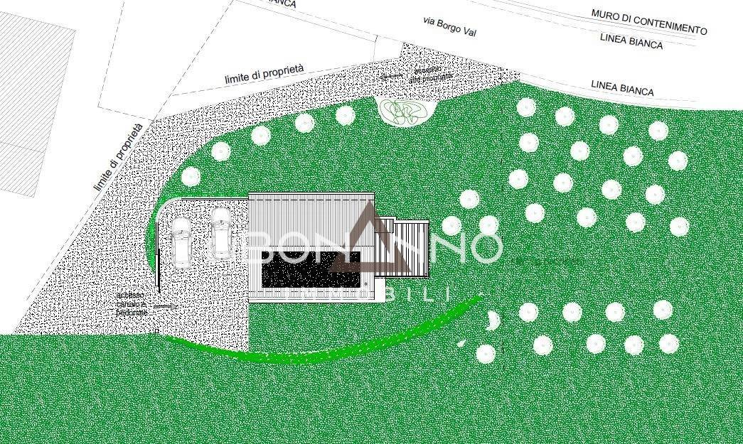 La casa in collina ha un terreno attorno di proprietà superiore a 20.000 metri quadrati, con circa 5.000 metri quadrati coltivati a vigneto, poi ci sono circa 500 piante di olivo e un piccolo bosco, il resto è prato.