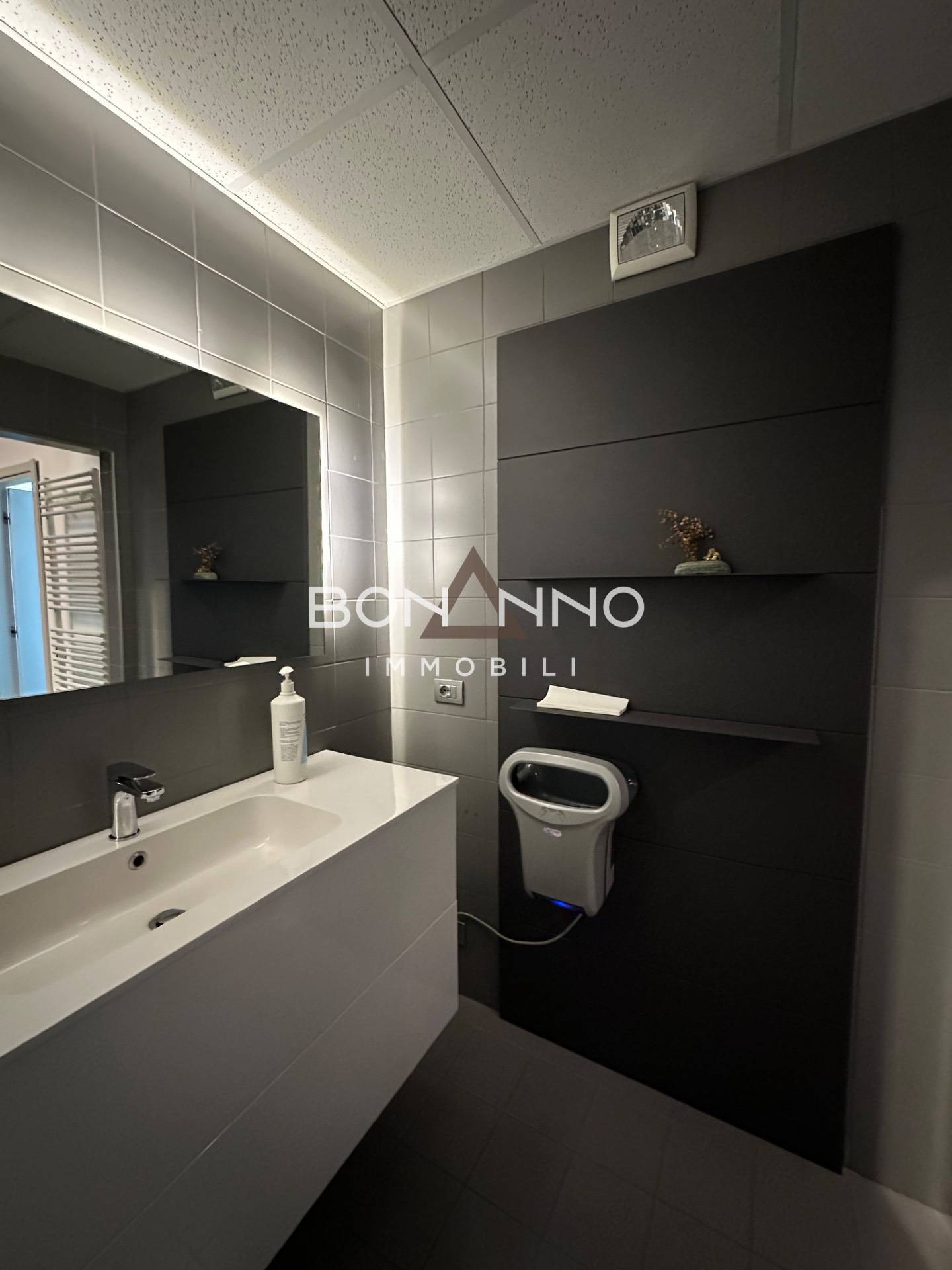 Con una superficie commerciale di 350 mq, l’ufficio è estremamente luminoso e arieggiato grazie alle numerose finestre che lo circondano che permettono una vista unica nella città.