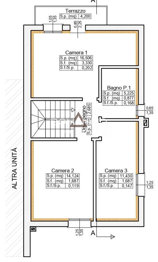 Salendo le scale al primo piano troviamo una camera matrimoniale compresa di cabina armadio e terrazzo. Ulteriore camera matrimoniale e una camera doppia; ulteriore bagno con doccia.