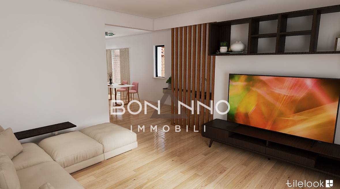 Varcando la soglia d’ingresso veniamo accolti da un ampio e luminoso soggiorno/cucina open space di 47 mq con vetrate comunicanti con il giardino esterno che costituisce a tutti gli effetti un estensione naturale della zona giorno. Percorrendo il disimpegno troviamo un antibagno e un bagno.