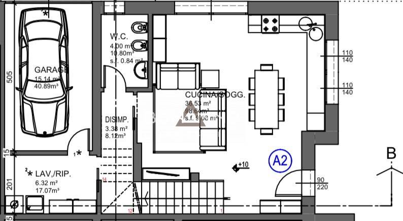 L’Immobile è così composto: ampio soggiorno/cucina open space di 40 mq con vetrata comunicante sula giardino privato di 150 mq che costituisce un estensione naturale della zona giorno, un bagno finestrato e il disimpegno che collega al garage di 16 mq con lavanderia annessa.